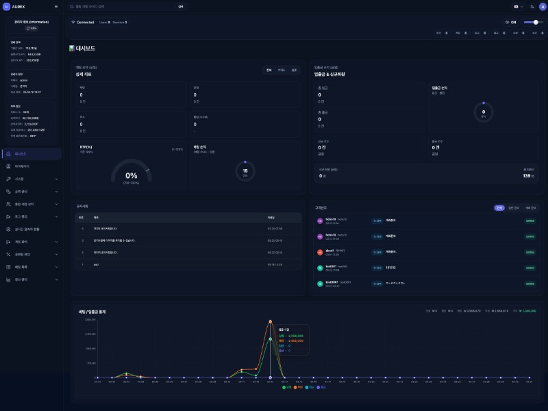 사용자 경험(UX)을 극대화한 인터페이스를 통해 높은 리텐션을 유도합니다. 모든 디바이스에서 완벽하게 구동되는 반응형 웹 디자인과 초저지연 로딩 속도를 보장합니다. 또한 강력한 관리자 페이지를 통해 실시간 데이터 분석, 정교한 리스크 관리, 그리고 효율적인 유저 관리가 가능합니다.